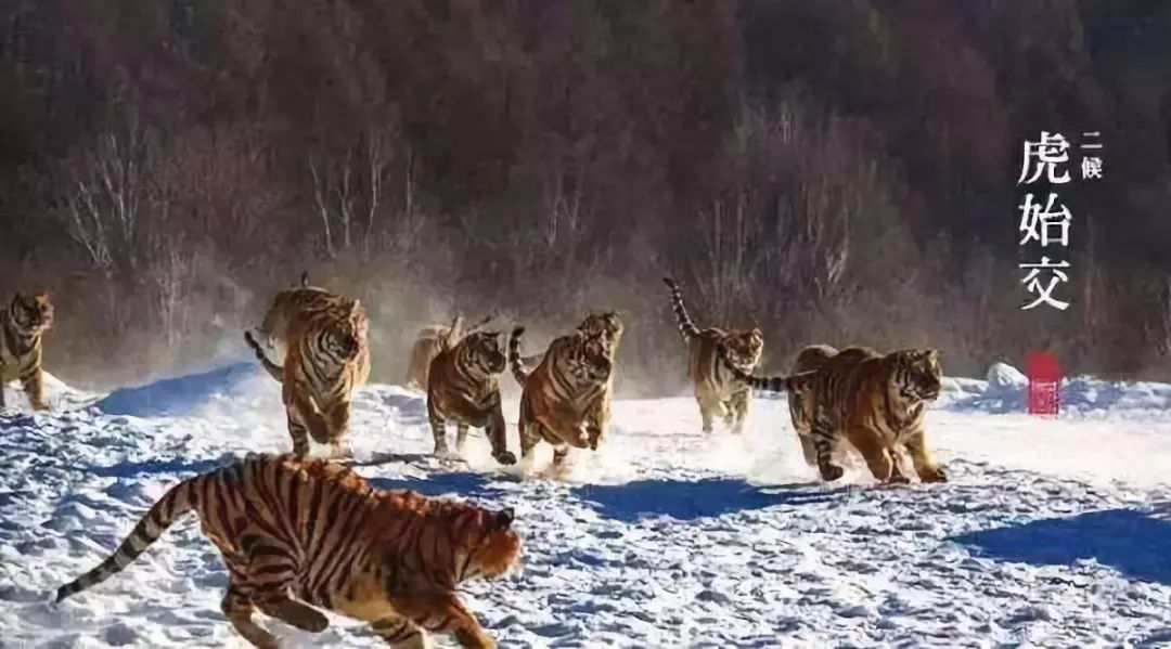 大雪时节,阴气盛,盛极而衰,阳气萌,老虎开始有求偶行为。