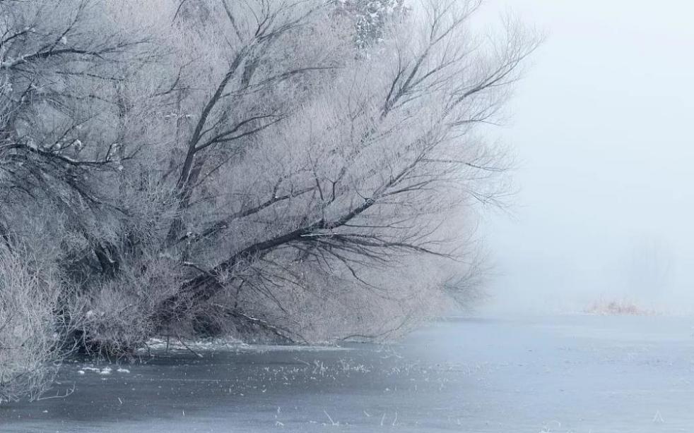 河塘中部结起厚冰,整个冰面变得更加坚固。
