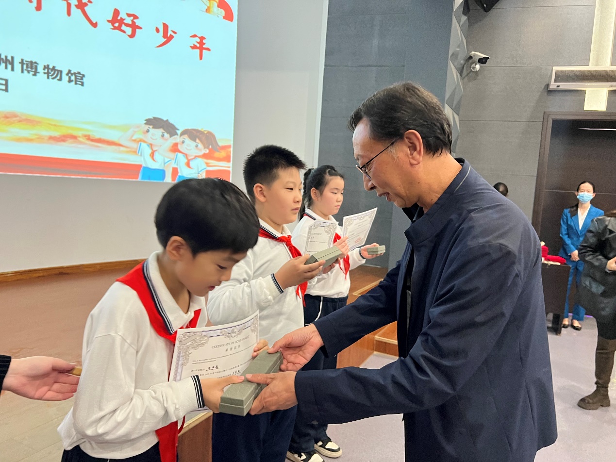 10月25日,一场别开生面的“弘扬荆楚文化 做新时代好少年”的馆校合作实践活动在荆州博物馆开展,荆州博物馆馆长王明钦、沙市黄家塘小学党支部副书记王孝波共同为“2023年度环球自然日科普竞赛”中获奖的师生颁奖,获奖学生代表、荆州博物馆优秀志愿者代表现场展示,荆州博物馆讲解员带领大家参观《海昏侯刘贺墓出土文物展》。