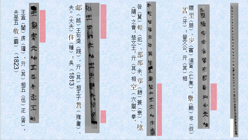 简数尚不明确。内容似为游说之辞。简文列举虞、夏、商、周四代帝王事迹,又列举“五霸”及其辅相之名(图15、16)。