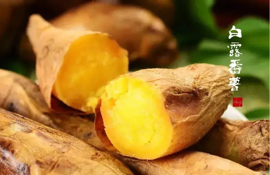 薯富含蛋白质、淀粉、果胶、纤维素、氨基酸、维生素及多种矿物质,含糖量15%20%有抗癌、保护心脏、预防肺气肿、糖尿病、减肥等功效,中医视薯为良药,有“长寿食品”之誉。李时珍《本草纲目》:“甘薯补虚,健脾开胃,强肾阴”。白露时节吃番薯可使饭后不会发胃酸,是为民俗