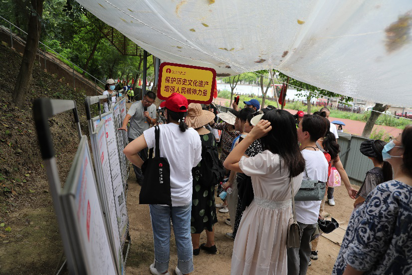 荆州博物馆党委委员、副馆长杨开勇全程主持并讲解荆州城墙及荆州古城历史文化,考古专家田勇重点讲解雄楚楼遗址保护展示、11号马面考古发掘现场。