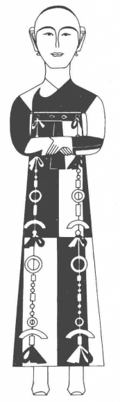 图二 江陵武昌义地楚墓出土偏衣俑(孙机:《华夏衣冠 中国古代服饰文化》,上海古籍出版社 , 2016年,第156页)