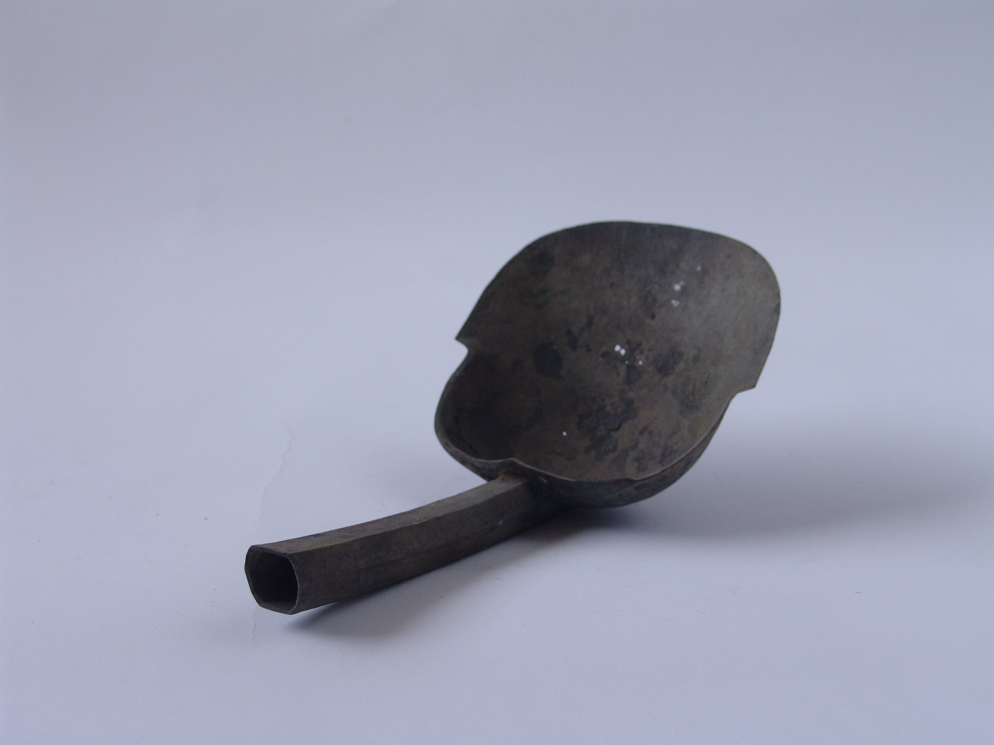 从考古发现来看,镂匕与盏、簋、鬲均有同出。如随州曾侯乙墓出土过一件镂空金匕(图四),出土时置于金盏内,枣阳九连墩1号墓的镂匕出自小铜鬲内,枣阳九连墩2号墓的镂匕出自铜簋内,其中,盏是古代盛放熟食的器皿,鬲是煮饭、粥用的炊器,簋是盛饭的器皿。可见,镂匕可以捞取汤中的食物,也可以取食饭粥。