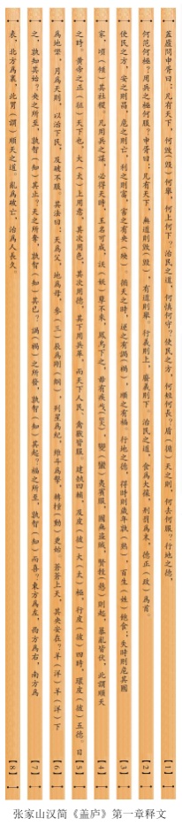 1983年12月,在江陵砖瓦厂(今属荆州区)发掘的张家山247号西汉墓中,出土了一批竹简。其中有一篇自题为《蓋廬》(今简化字作“盖庐”),共用竹简55支。全文分为九章,各章皆以盖庐的提问为开头,申胥的回答为主体。盖庐就是阖庐,申胥即是伍子胥。(伍子胥的封地在“申”,因此也被当时人称为“申胥”,见于《国语·吴语》韦昭注。)研究者认为“该书除涉及治理国家和用兵作战的理论外,有浓厚的兵阴阳家色彩,如强调‘天之时’、阴阳、刑德、‘用日月之道’、‘用五行之道’等。”张家山汉简《盖庐》的第1至8号简,为该书的第一章,将在荆州博物馆的基本陈列“荆州出土简牍文字展”中向公众展出。