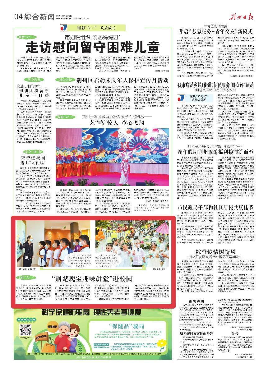 《荆州日报》报道荆州博物馆“荆楚瑰宝 趣味讲堂”系列教育活动