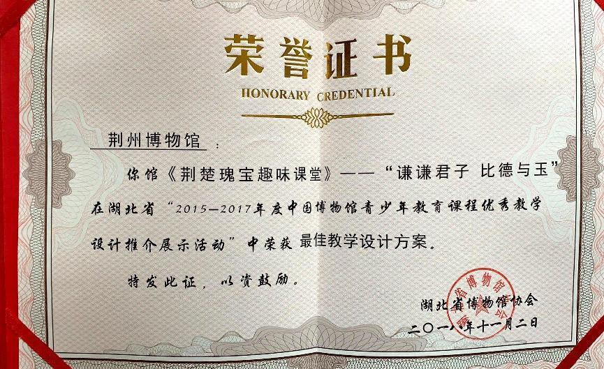 “荆楚瑰宝 趣味讲堂”荣获湖北省博物馆协会“最佳教学设计方案”