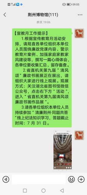 荆州博物馆2023年党风廉政建设宣传教育月活动总结