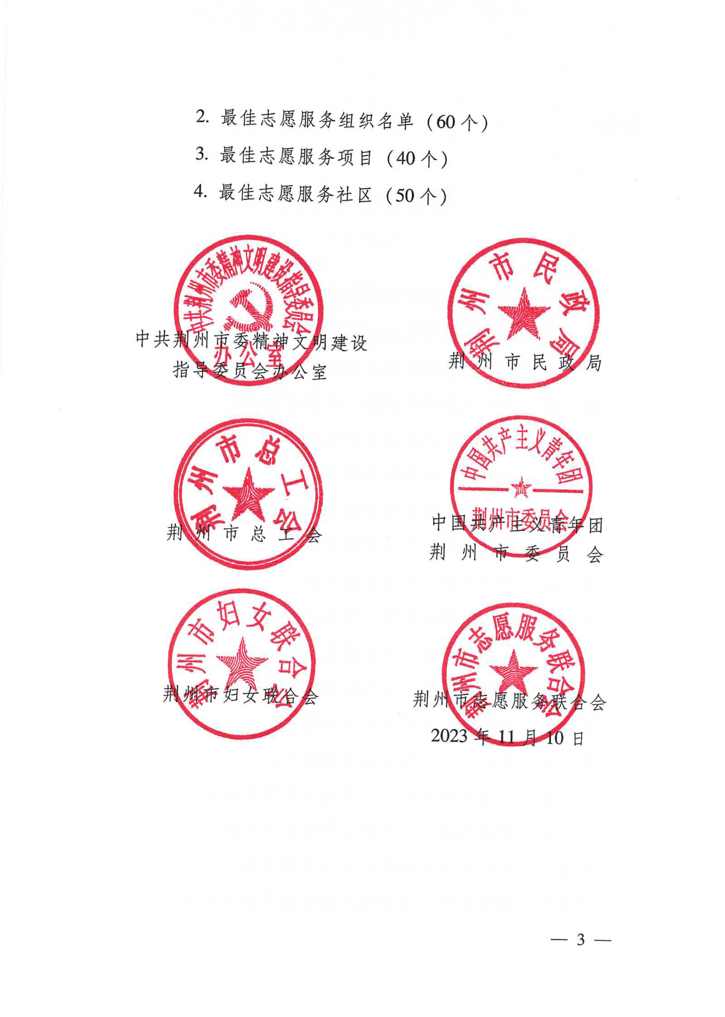 近期,荆州博物馆“公益文化宣讲项目”在市委文明办、市民政局、市总工会、团市委、市妇联、市志愿服务联合会等单位联合开展的2022-2023年度荆州市学雷锋志愿服务先进典型评选活动中荣获“最佳志愿服务项目”。