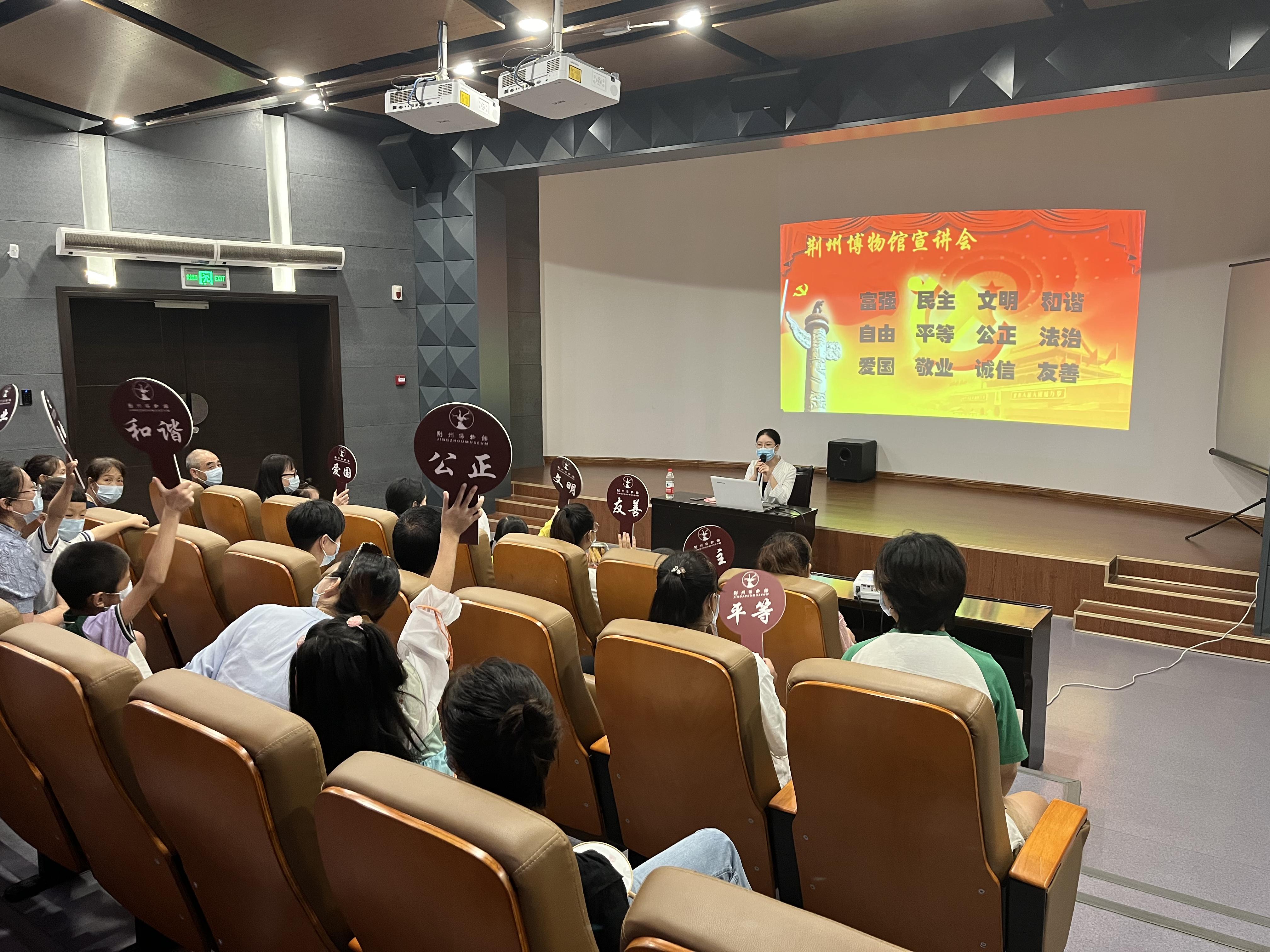 此次活动共分为“共襄中秋楚韵——参观荆州博物馆”、“共享文化课堂——了解节日来源及习俗”、“共赏节日习俗——中秋飞花令”三部分。讲解员带领大家参观珍品馆文物展览,开展文化课堂弘扬尊师重教的传统美德,通过猜灯谜、飞花令等习俗传播中华传统文化。活动现场气氛热烈,教师家庭和小朋友们获得文创品和教师节礼包,在博物馆感受特殊的美好佳节。