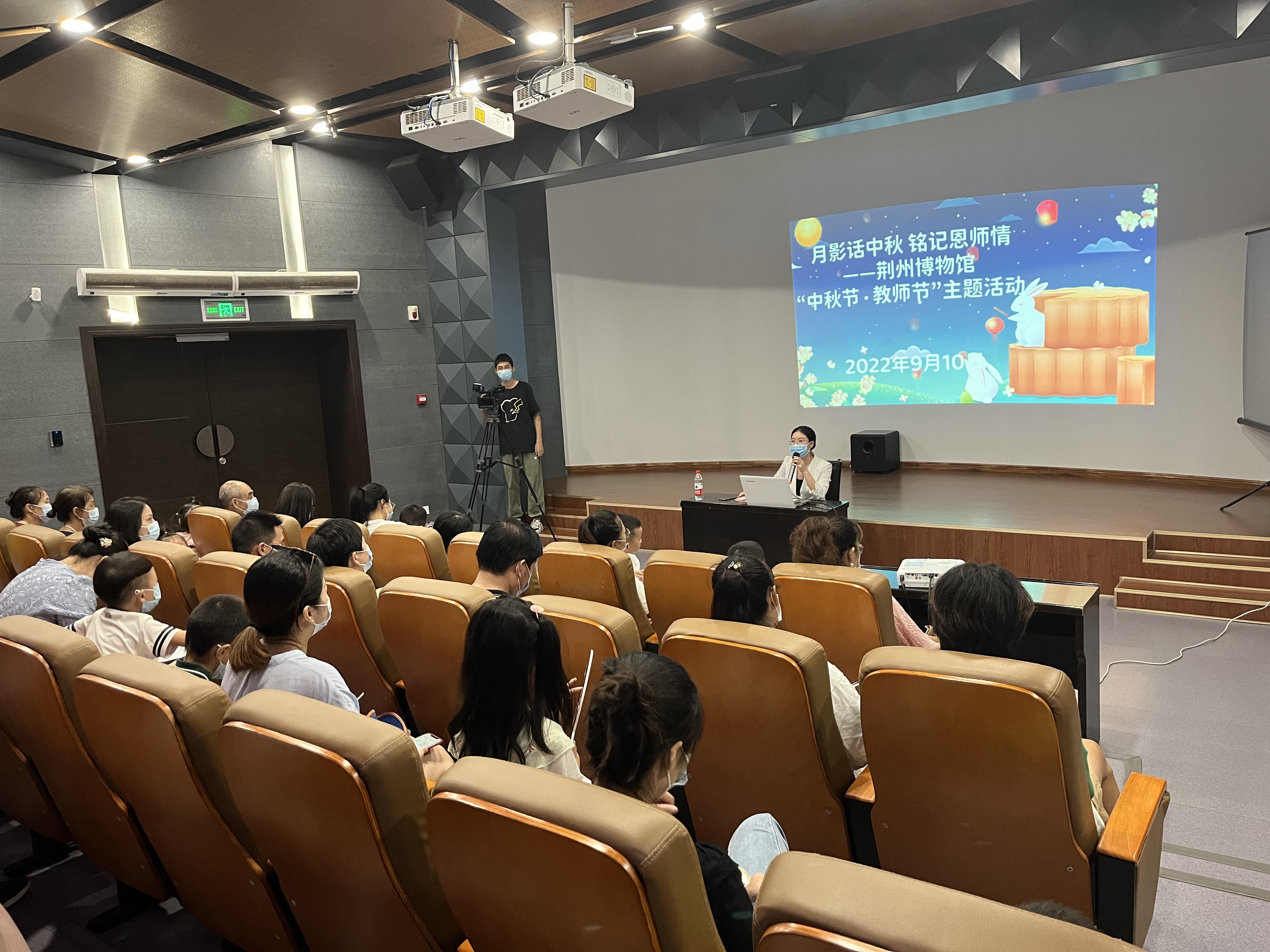 2022年9月10日非常特别,既是一年一度的“教师节”,又是中国四大传统节日之一的“中秋节”,在这美好的节日里,荆州博物馆结合两大节日开展了“月影话中秋 铭记恩师情”主题活动,通过官方微信公众号招募了15组教师家庭来馆参加活动。